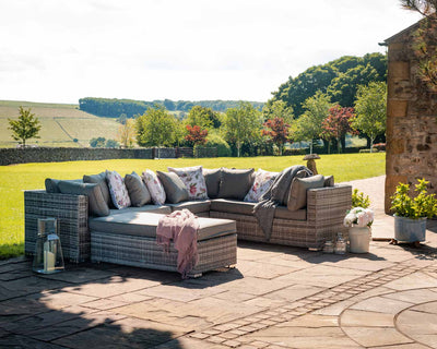 Aria Extended Garden Corner Sofa with Footstool & Coffee Table - Light Grey