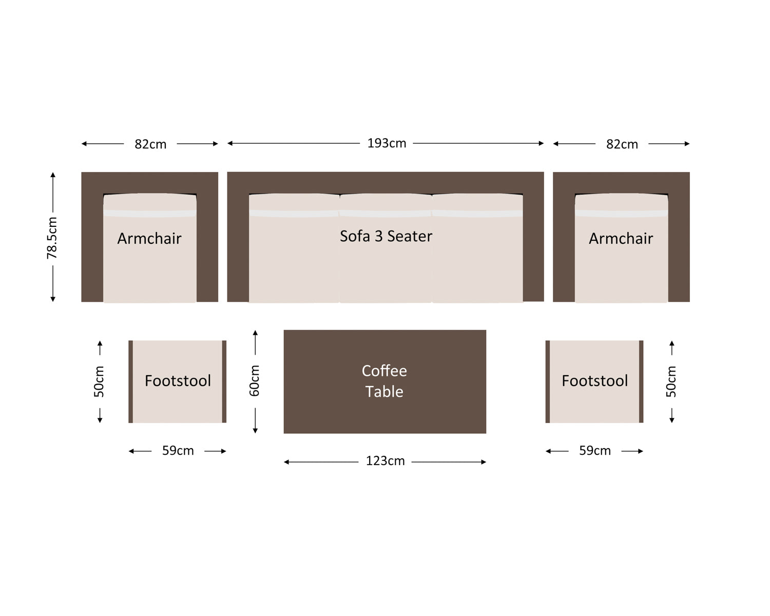 - Set includes - 1x 3‑seater Ascot sofa in premium truffle brown and champagne, 2x Ascot armchairs in premium truffle brown and champagne, 2x cushioned footstools in premium truffle brown and champagne, 1x large rectangular tempered glass coffee table in premium truffle brown, and FREE outdoor covers.