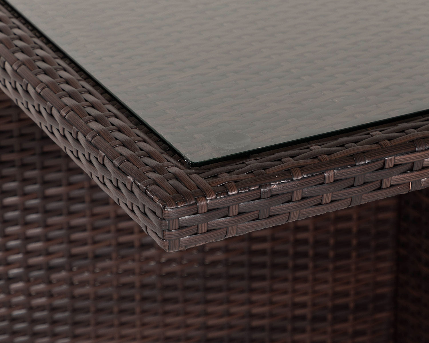 The Barcelona 4-seater cube set in chocolate and cream is the ultimate blend of classic warmth and clever functionality. We love how the decorative piped edging on the cream cushions adds a tailored, luxury feel that perfectly complements the rich chocolate weave. The "tuck-away" design is a game-changer for smaller patios or balconies, allowing you to host a full dinner and then reclaim your floor space in seconds. Built with a rust-resistant frame and supplied with a free protective cover, this set is a smart, stylish, and incredibly practical investment for those who love to entertain in a compact setting.