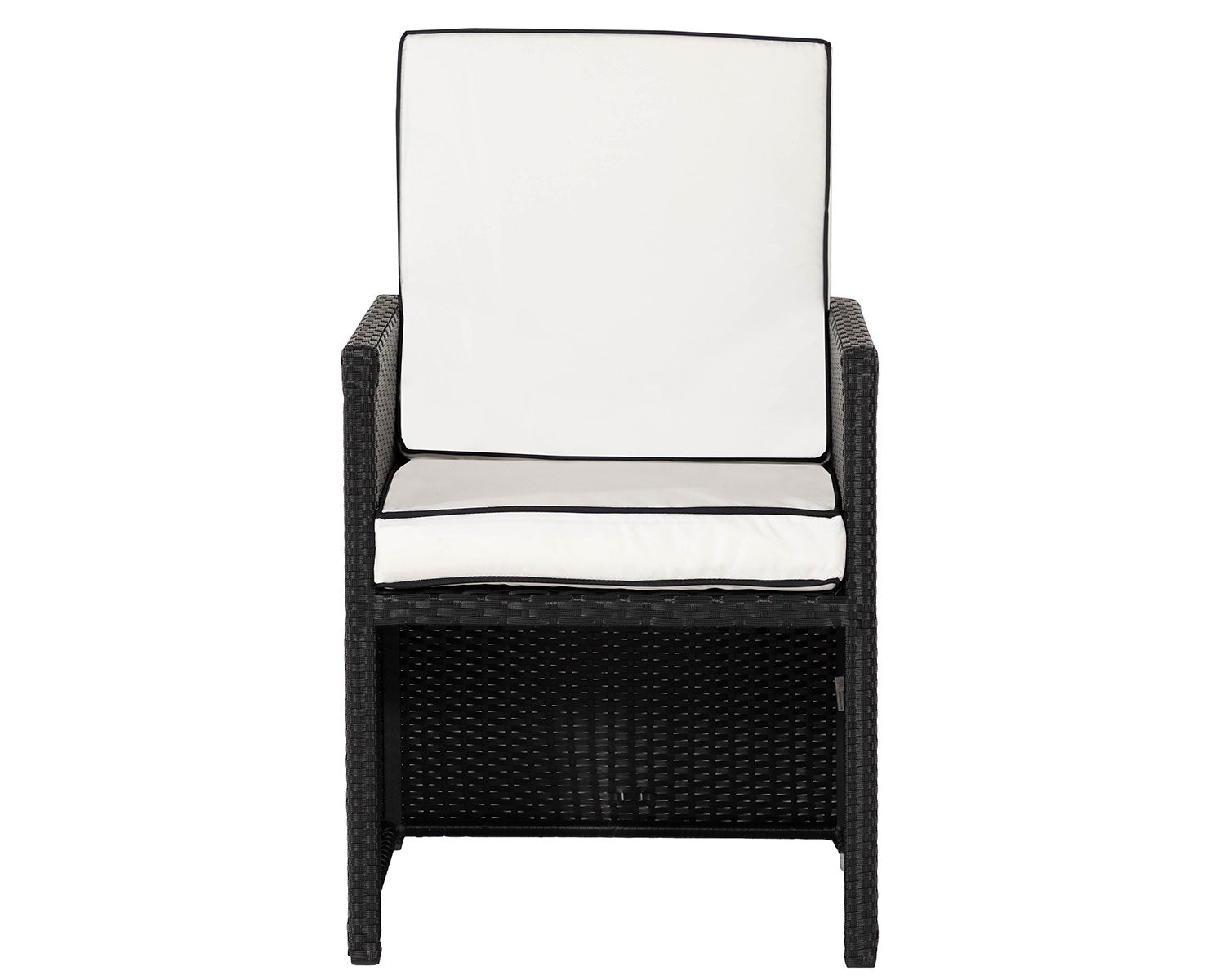 The Barcelona 6-seater cube set in black and vanilla is the ultimate blend of dramatic style and clever functionality. We love how the decorative piped edging on the vanilla cushions adds a tailored, luxury feel that perfectly complements the sleek black weave. The "tuck-away" design is a game-changer for modern patios, allowing you to host a full dinner party and then reclaim your floor space in seconds. Built with a rust-resistant frame and supplied with a free protective cover, this set is a smart, durable, and incredibly fashionable investment for those who love to entertain in a contemporary setting.