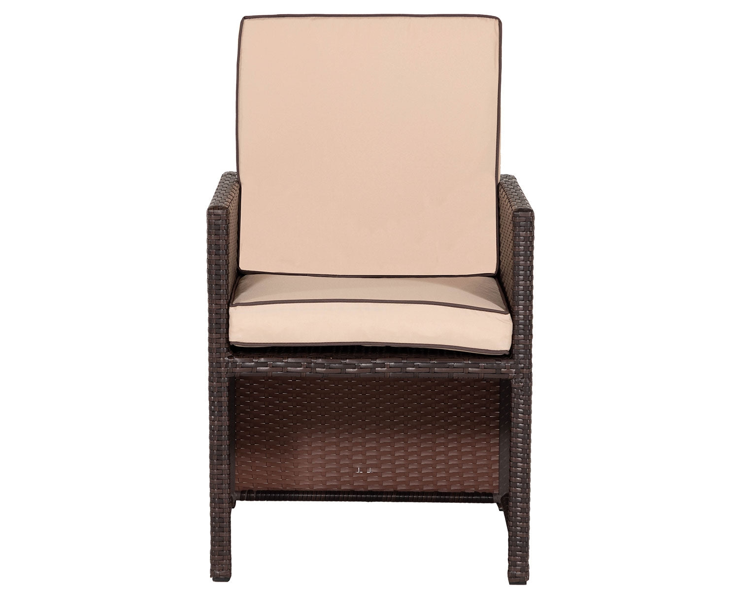 The Barcelona 6-seater cube set in chocolate and cream is the ultimate blend of classic warmth and clever functionality. We love how the decorative piped edging on the cream cushions adds a tailored, luxury feel that perfectly complements the rich chocolate weave. The "tuck-away" design is a game-changer for modern patios, allowing you to host a full dinner party and then reclaim your floor space in seconds. Built with a rust-resistant frame and supplied with a free protective cover, this set is a smart, stylish, and incredibly fashionable investment for those who love to entertain in a contemporary setting.