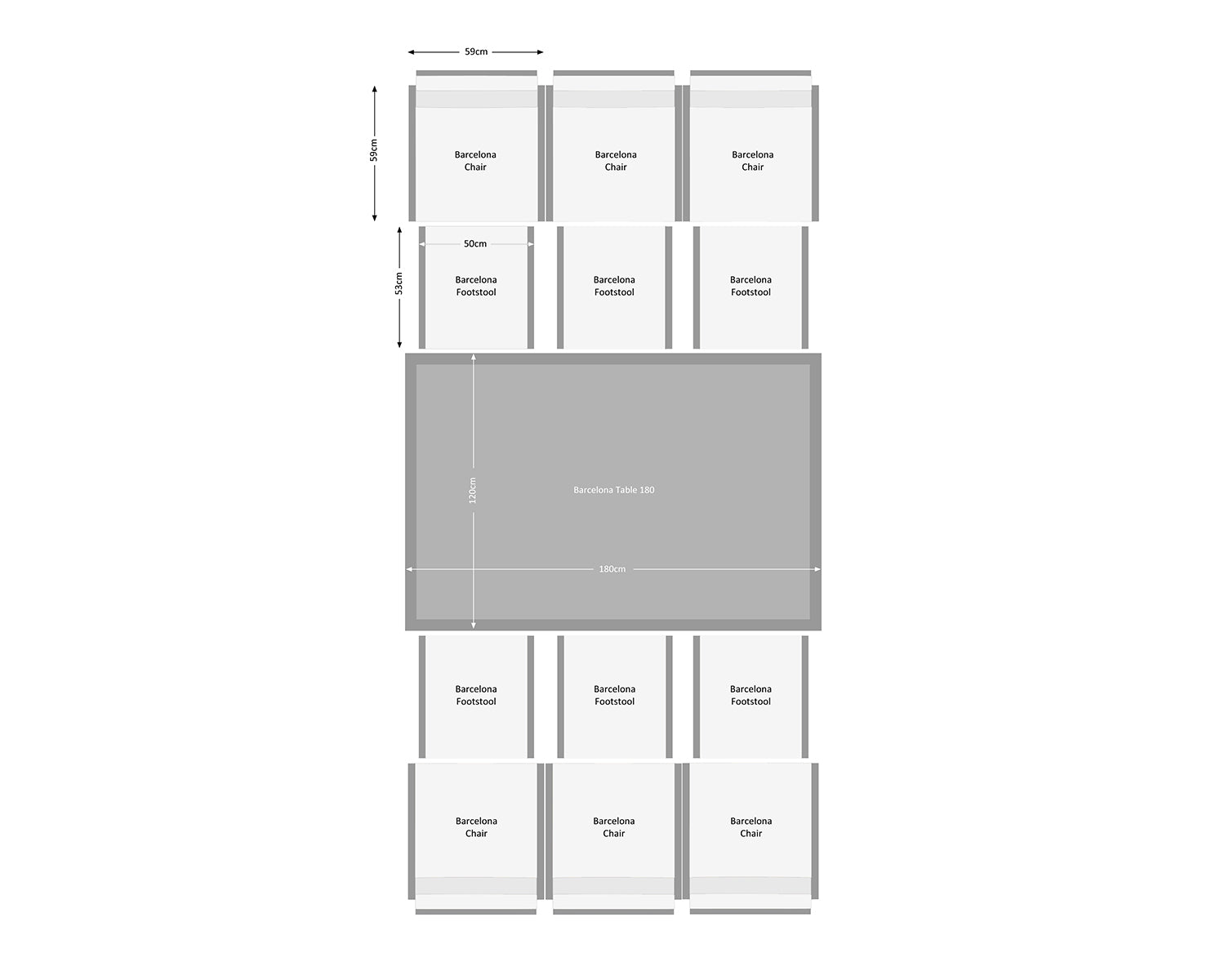 - Set includes - 6x Barcelona dining chairs in grey, 6x cushioned footstools in grey, 1x large rectangular tempered glass dining table in grey, and FREE outdoor covers.