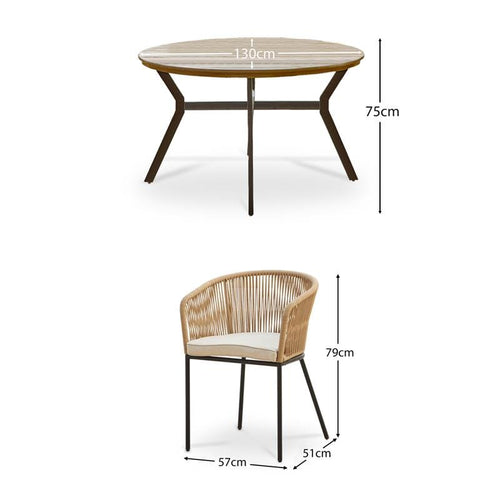 Ezra 4 Seater Round Wooden Garden Dining Set with 4 Hali Natural Rope Chairs