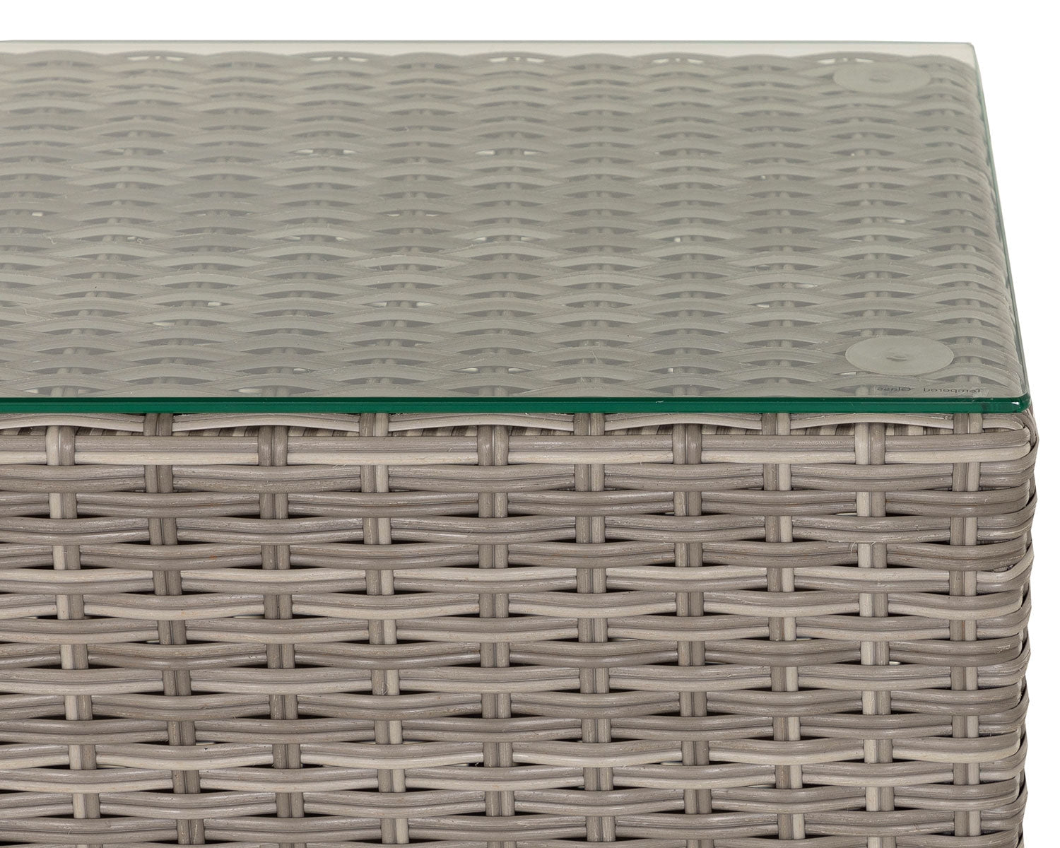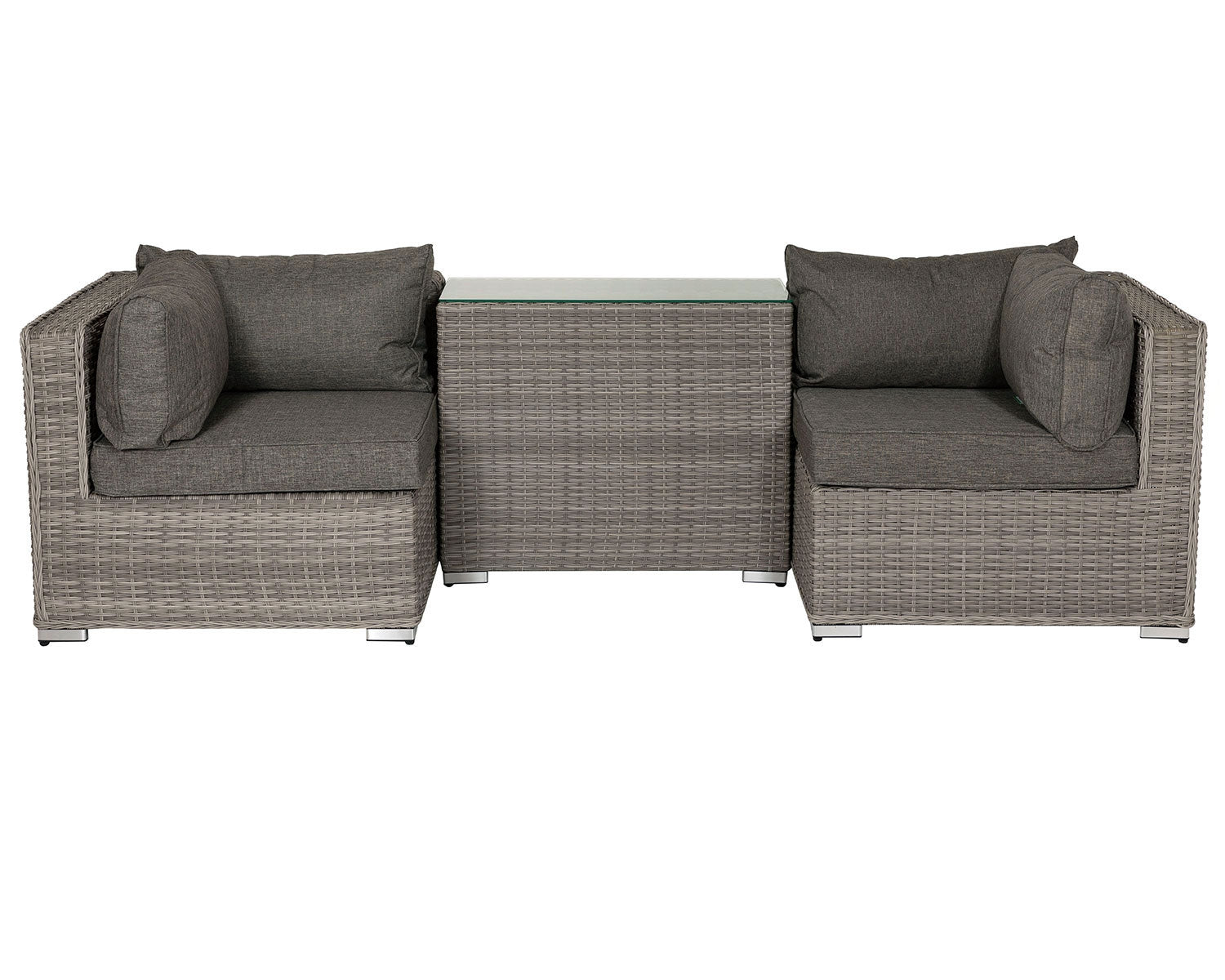 - Set includes - 2x Florida corner‑section chairs in grey and 1x high bistro table in grey.