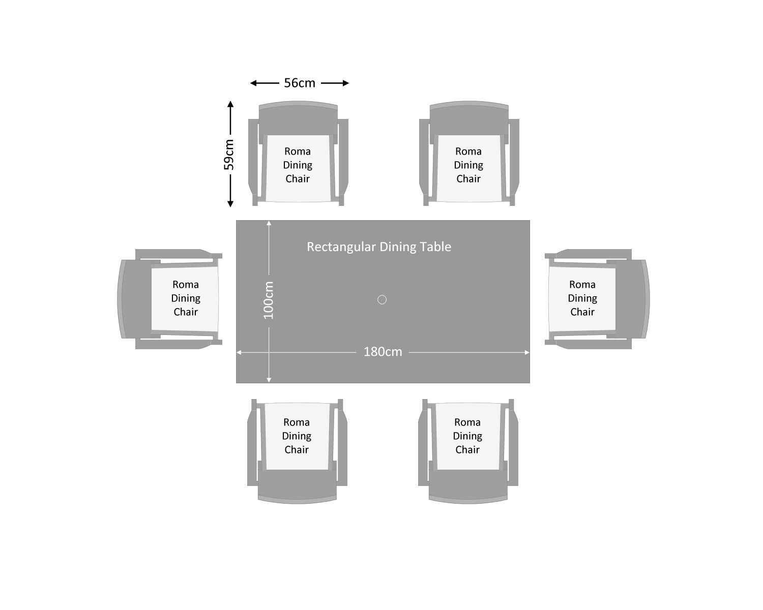 Roma 6 Stackable Chairs and Square Dining Table in Grey