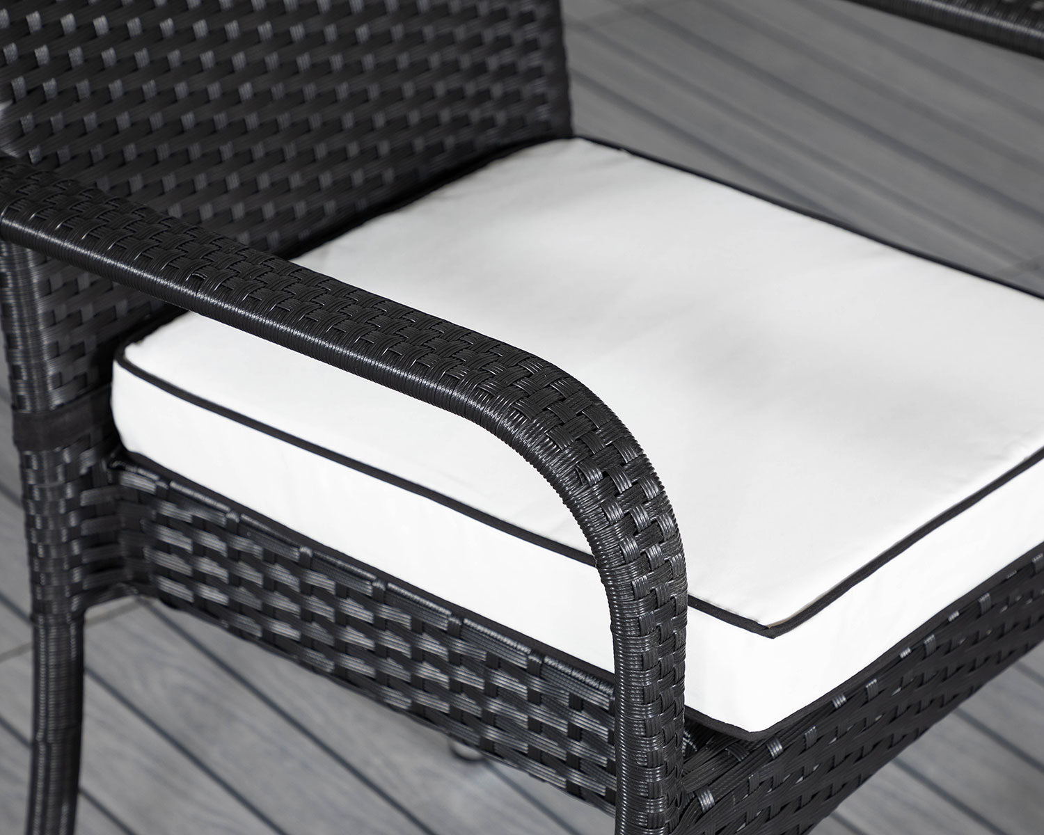 - Cushion features - Vanilla cushions that add comfort and a soft contrast to the black weave.