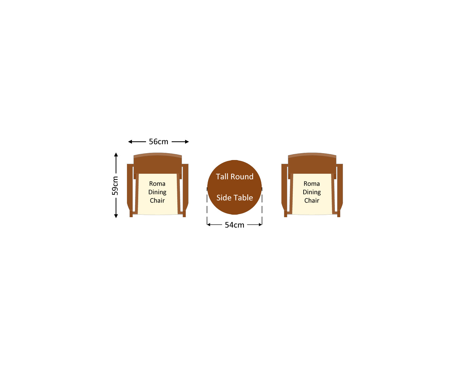 - Set includes - 2x Roma dining chairs in chocolate and cream and 1x small round bistro table in chocolate.